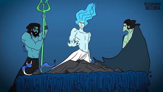 Saben quiénes son los que se reparten el mundo, ¿no? Pues eso: Zeus se queda con el Cielo, Poseidón con los Mares y Hades con el Inframundo.