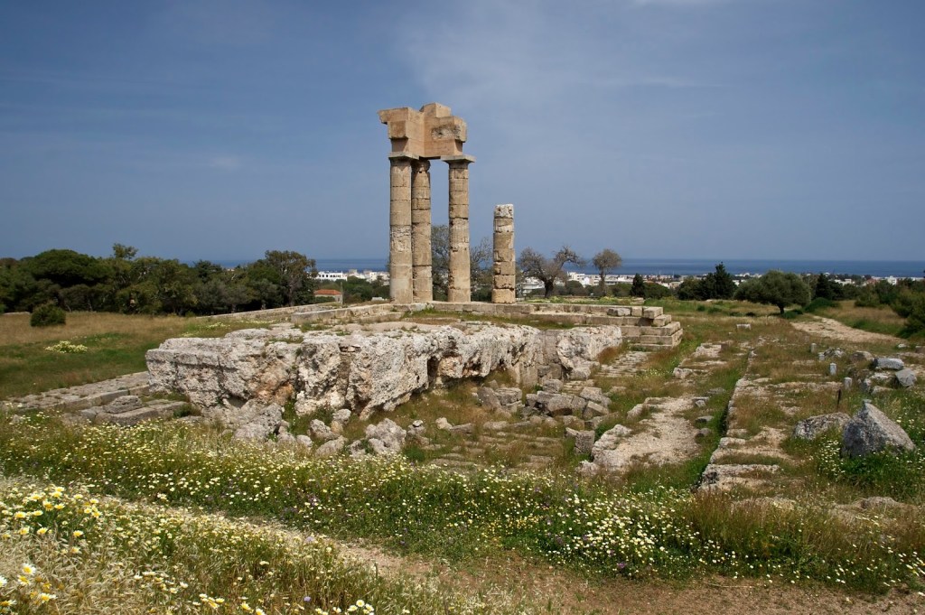 En primer lugar, Helios, a quien solían conocer como dios que todo lo ve y por eso era el más convocado. Su templo principal estaba en Rodas. Tres columnas y media quedan: