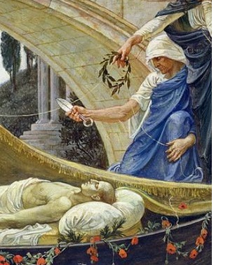 Si bien es cierto que a la única Moira que vemos claramente es a Átropos con unas tijeras al lado de la barca donde se encuentra la Muerte,