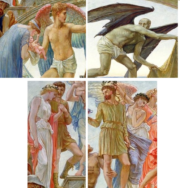 En este cuadro se juntan la Muerte y el Nacimiento, mediante la Vida (los matrimonios) que podemos observar encima del puente: