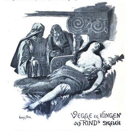 Esto colma la paciencia de Odín que toma su cayado de runas y lanza a la princesa un hechizo que provoca que caiga en los brazos de sus sirvientes totalmente aletargada. Tanto así que, cuando despierta, ha perdido todos los sentidos y vive presa de una furiosa melancolía que no la abandona. Decidido a rendirse el rey recibe la visita de una misteriosa anciana llamada Vak que ofreció prescribir la cura de la princesa… creo que ya podrán imaginar por dónde van los tiros, pues el dios obtiene total control y dominio sobre la princesa a quien amenaza con no curar de su mal si no promete que sería su esposa.