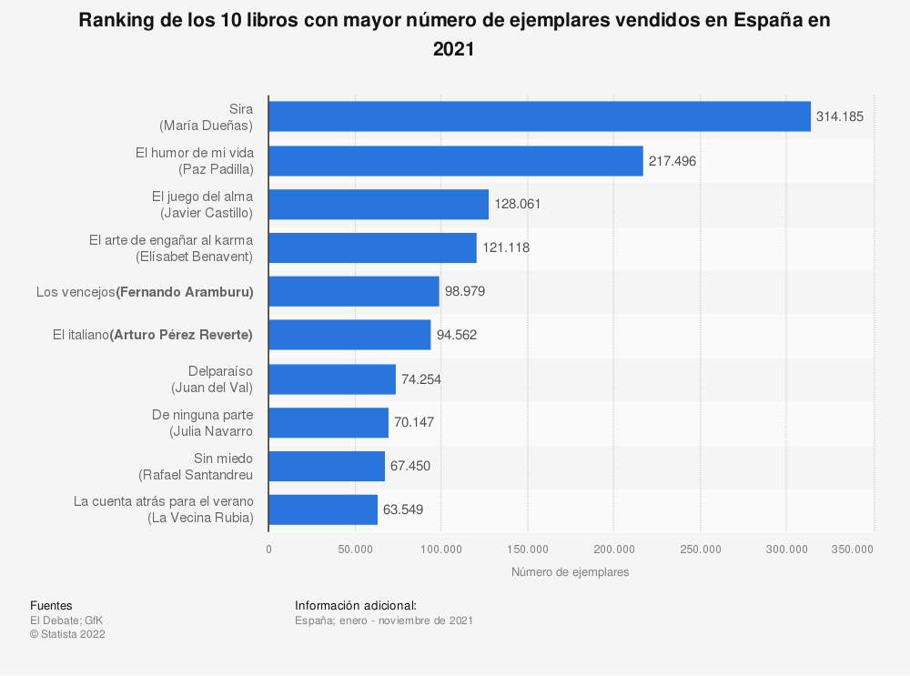 Por otro lado, en 2021 y en España, del listado de los 10 primeros puestos de los libros más vendidos hay 5 mujeres.