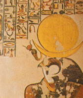 Este sí es hijo de Amón-Ra y de Mut. Su nombre significa viajar, moverse o correr (su padre era conocido como el Viajante) y sí, suyas eran las obligaciones como mensajero de los dioses. Lo representan como un hombre con la cabeza de un halcón que lleva sobre su cabeza un disco lunar asentado en la luna creciente, pero también como un hombre con doble cabeza de halcón, una para el sol y otra para la luna.