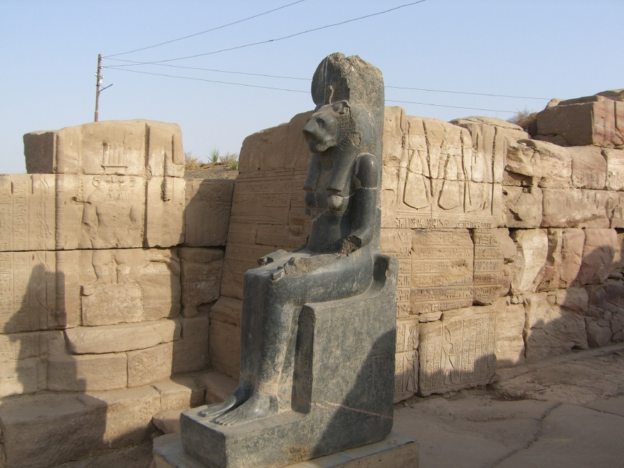 Su culto se concentraba en su propio templo de Karnak construido por Amenofis III. Hoy en día está en ruinas, pero dentro albergó dos patios interiores en los que se agolpaban unas seis estatuas de granito negro de la diosa Sekhmet que tuvo su presencia en Tebas gracias a este lugar.