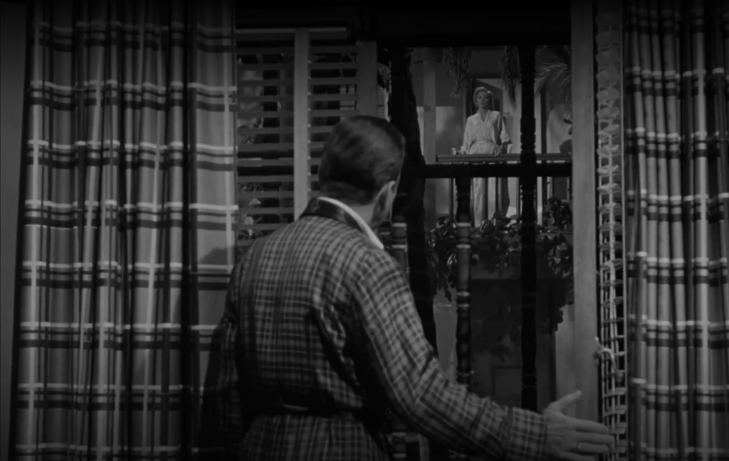 La fotografía de Burnett Guffey, futuro ganador del Óscar por De aquí a la eternidad y Bonnie and Clyde, es clave para convertir esos espacios en estados mentales. Trabaja con un blanco y negro denso, saturado, de negros profundos y altos contrastes, donde no se teme dejar zonas del encuadre sumidas en sombra total. Esas áreas de oscuridad acompañan a los momentos de la trama como un muro visual que oprime y crea la sensación de desasosiego constante. Es el claroscuro del noir, pero aquí no se usa únicamente para crear la atmósfera, sino que la luz funciona como barómetro emocional. Cuando hay confianza, el plano respira en grises; cuando aparece la sospecha, los negros se endurecen y devoran el espacio.